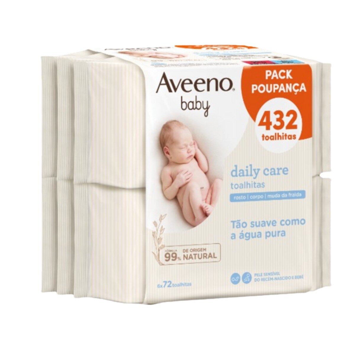 Aveeno Baby Toalhitas Limpeza Pack 6x72un (432), limpam suavemente a pele delicada do bebé, deixando-a hidratada, confortável e protegida. Com extrato de aveia e aloé, ajudam a prevenir a vermelhidão e são adequadas para pele seca e sensível. A sua fórmula de 99% de origem natural, pH equilibrado, sem perfume, sem corantes, sem álcool e sem sabão, é testada por pediatras, garantindo segurança e cuidado diário para a pele do bebé.