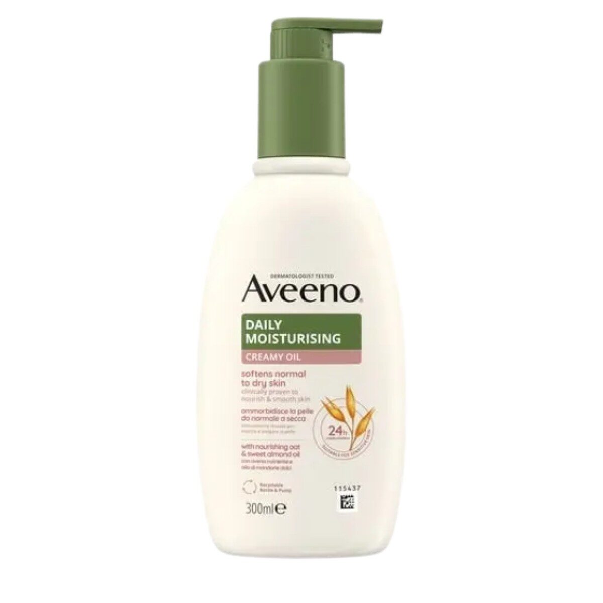 Aveeno Daily Óleo Cremoso Hidratante 300ml, combina o poder da aveia coloidal com o óleo de amêndoas doces numa fórmula rica e de rápida absorção, não gordurosa, que proporciona hidratação intensa durante 24 horas. Clinicamente comprovado, ajuda a nutrir, suavizar e proteger a pele seca, reforçando o seu equilíbrio natural para uma pele com aspeto saudável, confortável e mais resistente desde a primeira utilização.