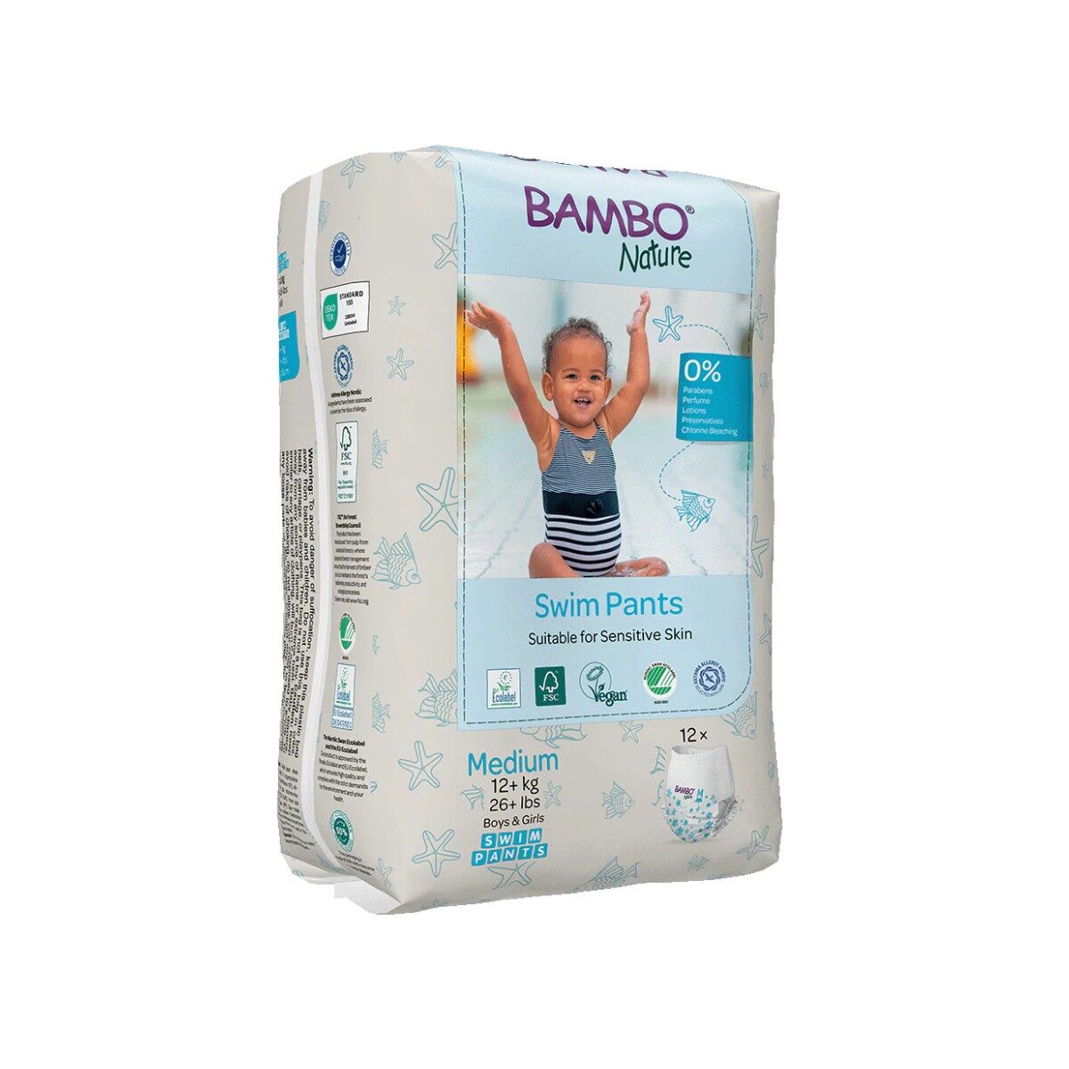 Bambo Nature Fralda Swim M 12kg+ X12 oferecem conforto e segurança graças ao ajuste suave e elástico em toda a cintura, adaptando‑se perfeitamente ao corpo do bebé na água. Desenvolvidas especialmente para uso na piscina e no mar, contam com barreiras duplas que mantêm a água limpa e evitam acidentes. Suaves e ideais para o uso diário, proporcionam máxima proteção sem agredir a pele sensível do bebé.