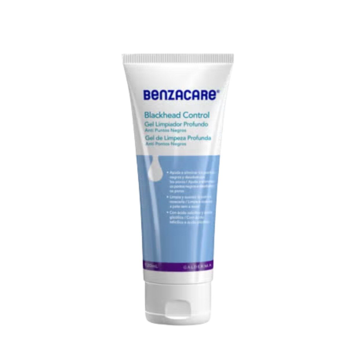 Benzacare Blackhead Control Gel de Limpeza Profunda 120 ml, é um cuidado eficaz desenvolvido para quem sofre com pontos negros e impurezas. A sua fórmula com ácido salicílico, ácido glicólico e microesferas exfoliantes exfolia suavemente a pele, removendo células mortas, enquanto limpa em profundidade e desobstrui os poros, ajudando a eliminar os pontos negros e a prevenir o seu reaparecimento. Graças à sua ação equilibrada, não causa irritação nem seca a pele, deixando-a mais suave, luminosa e livre de impurezas desde as primeiras utilizações.