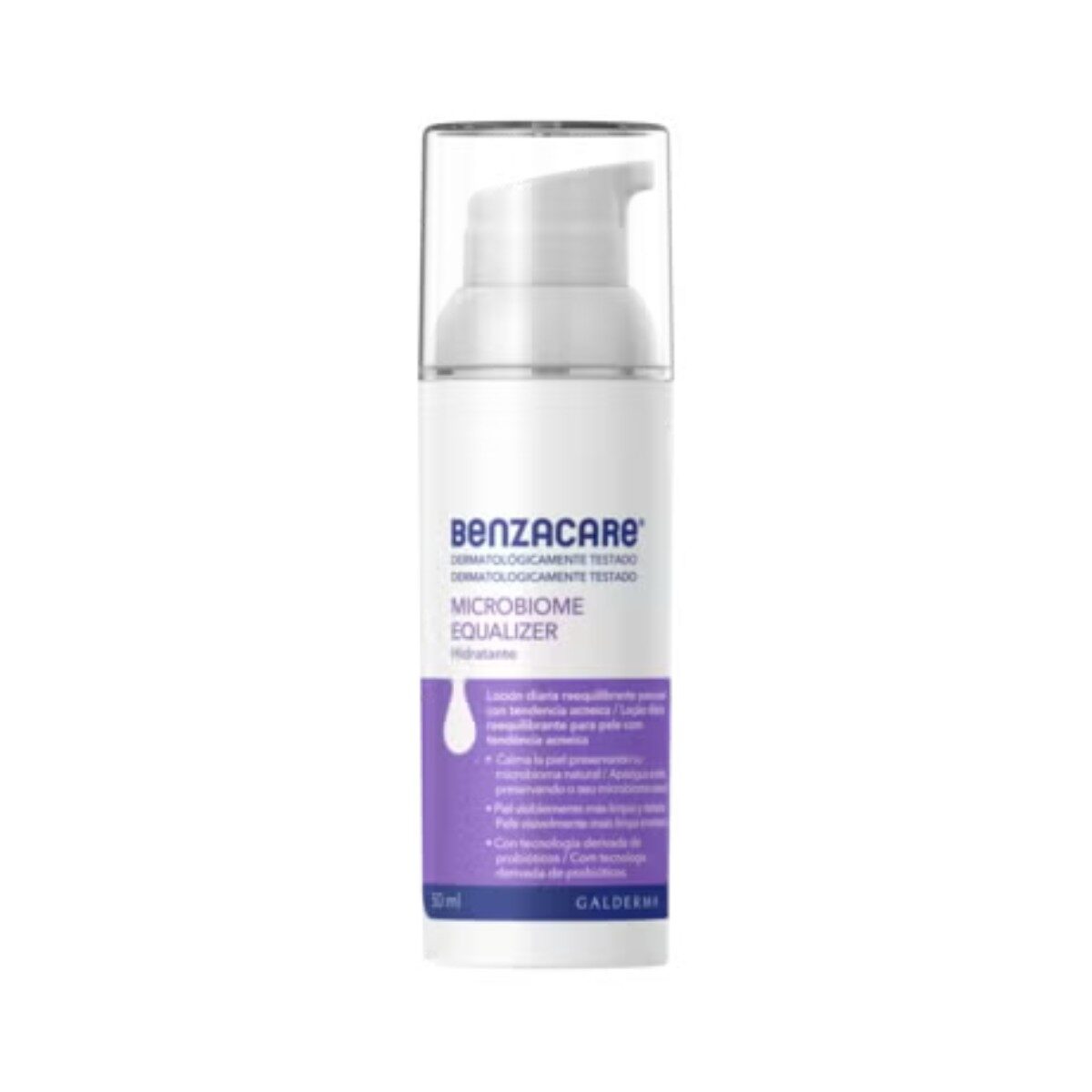 Benzacare Microbiome Equalizer Hidratante desenvolvida para pele com tendência acneica, formulada com tecnologia derivada de probióticos que ajuda a reequilibrar o microbioma cutâneo. Proporciona hidratação durante 24 horas, regula a produção de sebo e contribui para a redução das imperfeições.