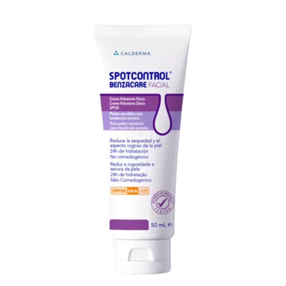 Benzacare Spotcontrol Facial Creme Hidratante Diário SPF30 50ml, foi desenvolvido a pensar nas necessidades da pele com tendência acneica. A sua fórmula de rápida absorção combina a tecnologia de ceramidas, que hidrata profundamente e ajuda a proteger a barreira cutânea, com uma alta proteção solar UVA/UVB, sobretudo durante tratamentos antiacne.