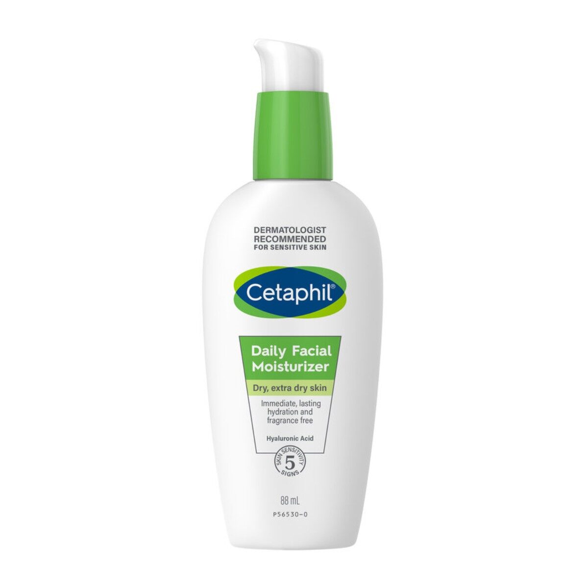 Cetaphil Hidratante Facial Diário, loção hidratante leve, ideal para o rosto e indicada para pele sensível, seca a muito seca. Proporciona hidratação imediata e duradoura, ajudando a manter a humidade natural da pele e a protegê-la da secura. Formulada com ácido hialurónico e uma combinação de agentes altamente hidratantes, esta loção não comedogénica é rapidamente absorvida, sendo ideal para aplicação sob maquilhagem. Dermatologicamente testada e clinicamente comprovada como sendo suave para pele sensível, oferece hidratação durante 24 horas e protege contra os 5 sinais de pele sensível: barreira cutânea fragilizada, secura, irritação, rugosidade e sensação de repuxamento.