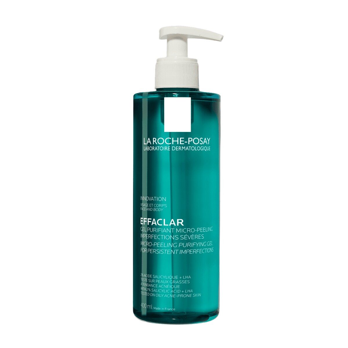 La Roche-Posay Effaclar Gel Purificante Micropeeling 400ml -20%, purifica, desobstrui poros e elimina o excesso de sebo. A longo prazo, reduz imperfeições severas, o seu reaparecimento e marcas. A textura da pele fica mais suave.