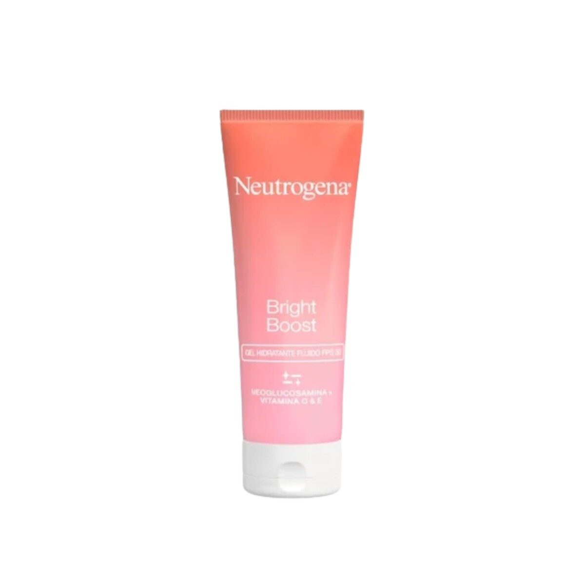 Neutrogena Bright Boost Fluido SPF30, fluído hidratante com antioxidantes, Neoglucosamina, Vitamina C e E e proteção UVA/UVB de largo espetro FPS 30. Protege a pele contra a exposição ambiental, estimula a renovação celular e previne o envelhecimento. Fórmula iluminadora que reforça a luminosidade da pele.