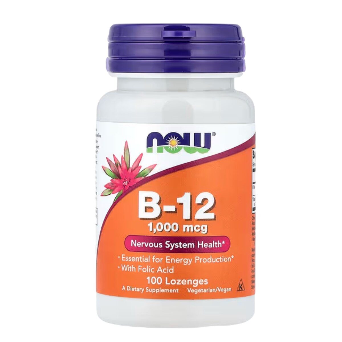 Now B-12 1,000 MCG 100 Losangos Mastigaveis, apoia a saúde cardiovascular. A ingestão adequada de B-12 é especialmente importante para vegetarianos e veganos, uma vez que as suas fontes alimentares são quase exclusivamente de origem animal.