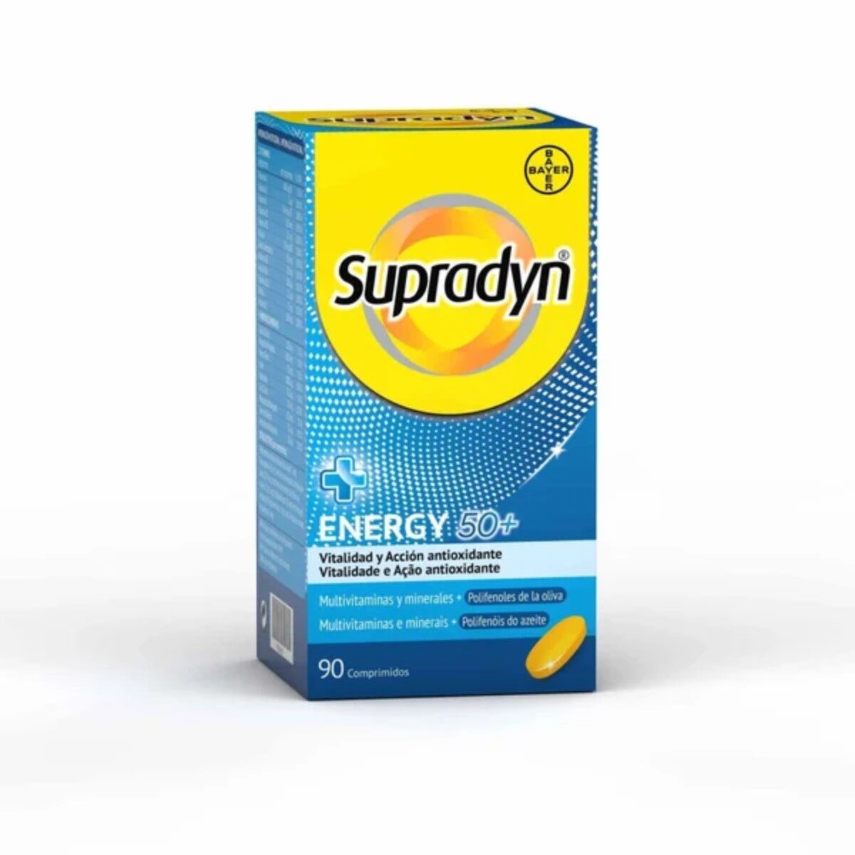 Supradyn Energy 50+ Comp X90 é um multivitamínico completo, especialmente formulado para quem quer manter-se ativo, enérgico e protegido com o passar dos anos. A sua fórmula equilibrada, oferece um impulso de vitalidade para o dia a dia, contribuindo para o metabolismo energético e o sistema imunitário. Graças à combinação de Vitaminas B, C, Zinco e Selénio, oferece proteção celular contra oxidações indesejáveis e apoia o normal funcionamento cognitivo.