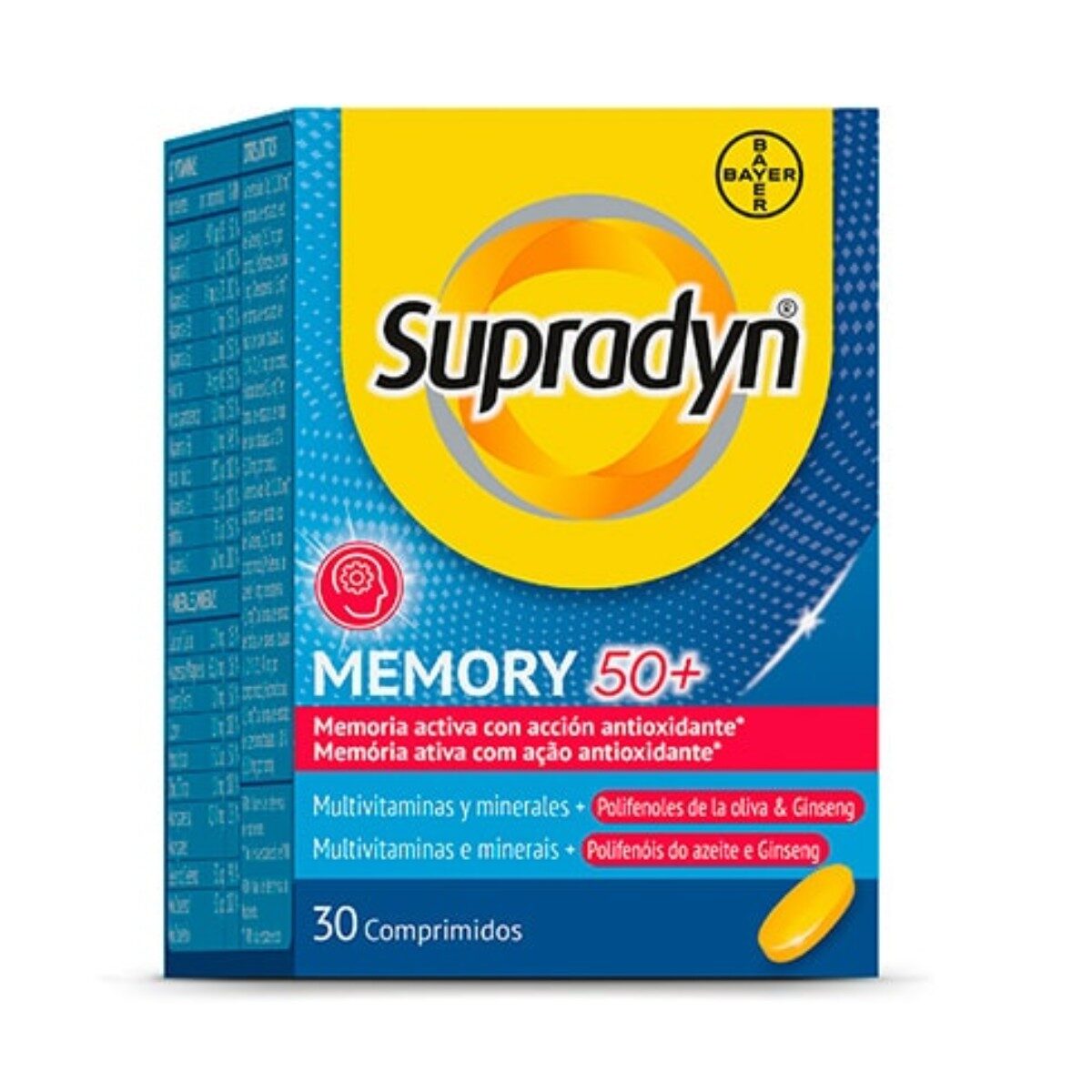 Supradyn Memory 50+ Comp X30 oferece uma fórmula completa especialmente desenvolvida para apoiar a energia, a memória e a vitalidade de quem tem mais de 50 anos. Com uma combinação única de 12 vitaminas, 9 minerais e ginseng de origem natural, ajuda a manter o desempenho cognitivo e físico, protegendo as células contra os danos oxidativos. A sua composição equilibrada contribui para o normal metabolismo produtor de energia e reforça o sistema imunitário, ajudando-o a manter-se ativo e cheio de vida.