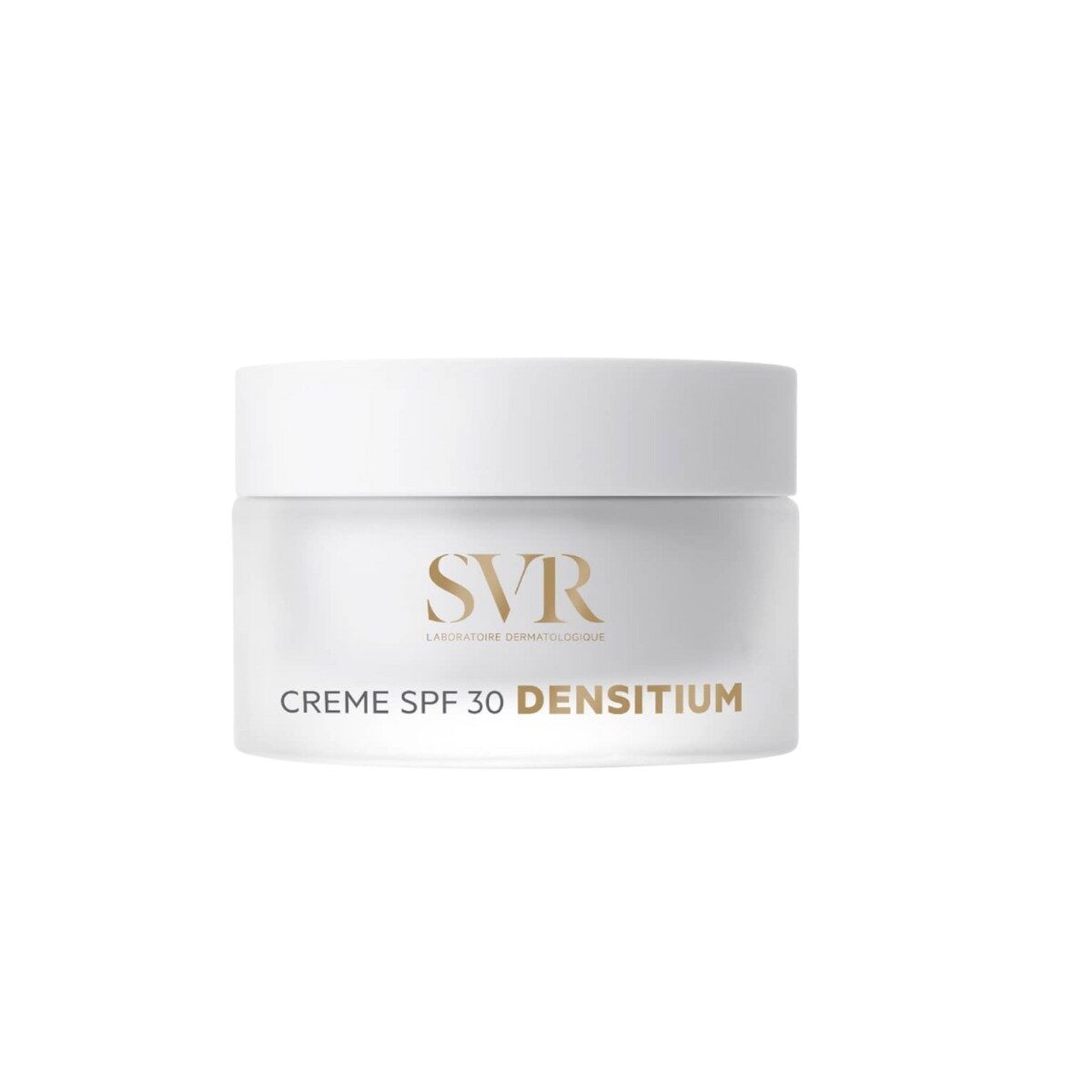 SVR Densitium Creme SPF30 , oferece uma ação total anti-aging com fotoproteção contra UVB, UVA, IR, luz visível, responsáveis pelo fotoenvelhecimento e manchas escuras. A patente de filtros SVR combina uma elevada proteção solar de largo esparto com um poderoso complexo antioxidante que protege e reforça a pele contra os efeitos nocivos do sol, responsáveis por acelerarem o envelhecimento cutâneo. A pele fica mais tonificada e firme, assim como os contornos do rosto mais definidos.